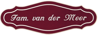 Het kunststof dat gebruikt wordt is een harde soort plastic (standaard 1,6 mm dikte), welke uitstekend geschikt is voor gebruik in en rondom uw woning. De tekst wordt in alle kunststofnaamborden gegraveerd, waardoor uw naam niet weg kan slijten of vervagen. De kunststofnaamborden bestaan uit twee kleuren: een onderliggende grondkleur en een bovenliggende topkleur. Wanneer uw naam in het naambord gegraveerd wordt, wordt de topkleur weg gegraveerd en verschijnt uw naam in de onderliggende kleur. Kunststof wordt standaard met een zelfklevende plaklaag geleverd. Daarmee kan het op vrijwel elke vlakke achtergrond gemakkelijk bevestigd worden. Het is echter niet geschikt om op een stenen of andere ongelijke achtergrond te bevestigen!